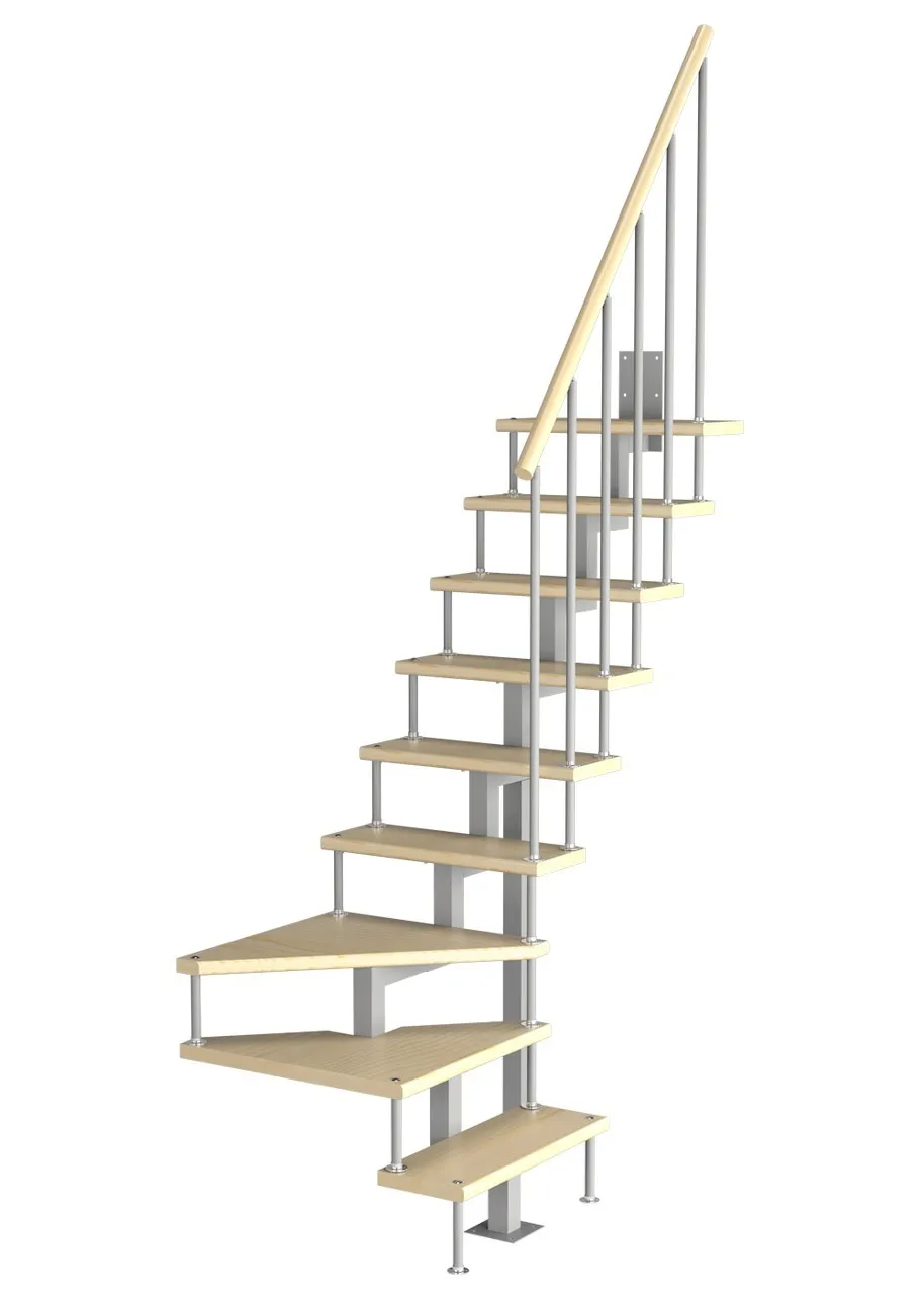Легкая для монтажа и доработок по высоте: можно добавить подиум или легко обрезать по высоте. Практичная и компактная – удобно наступать так, как все ступени открыты. Угол подъема составляет 34 градуса. Монтаж осуществляется силами двух человек на объекте по указаниям, приведенным в паспорте на лестницу.