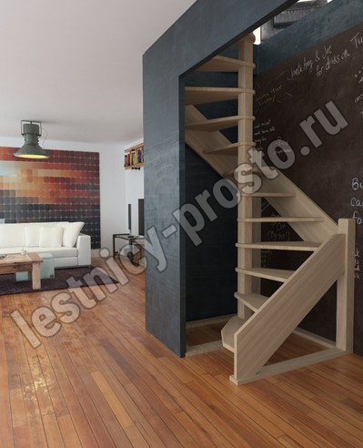 Деревянная межэтажная лестница ЛЕС-1,2ВУ, Сосна