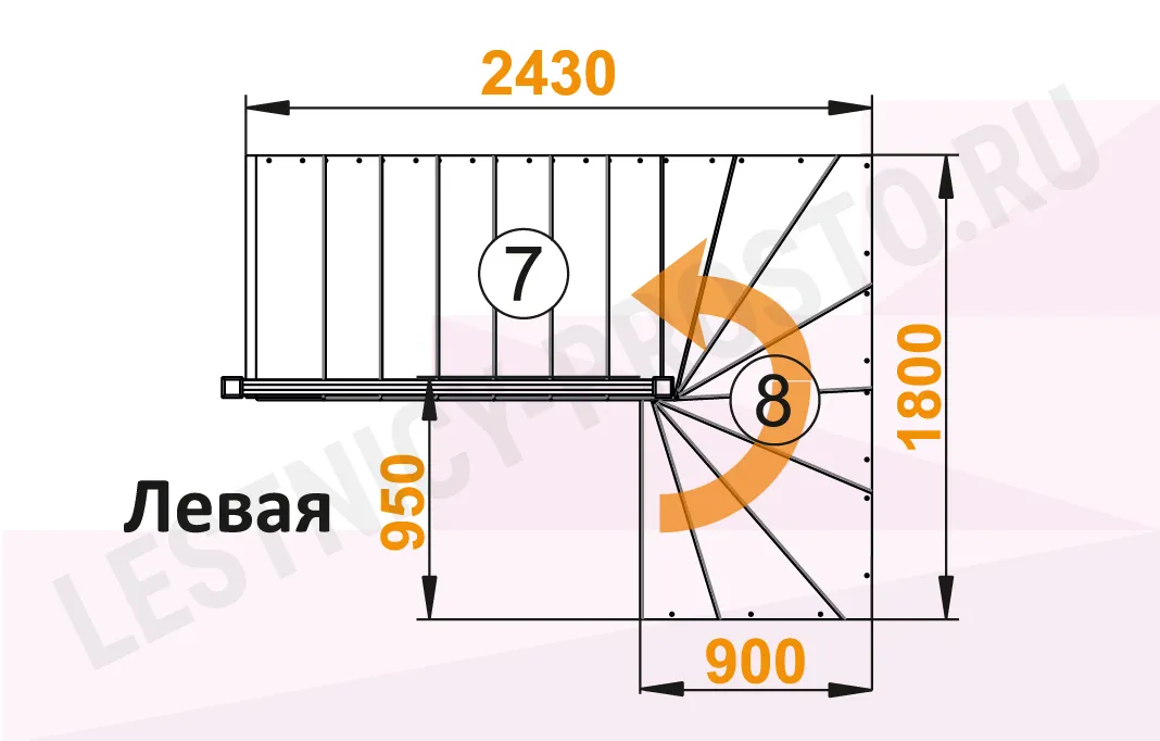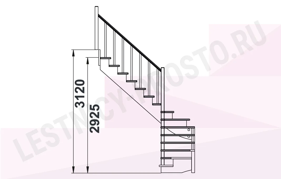 Схема лестницы К-003М/5 с поворотом налево