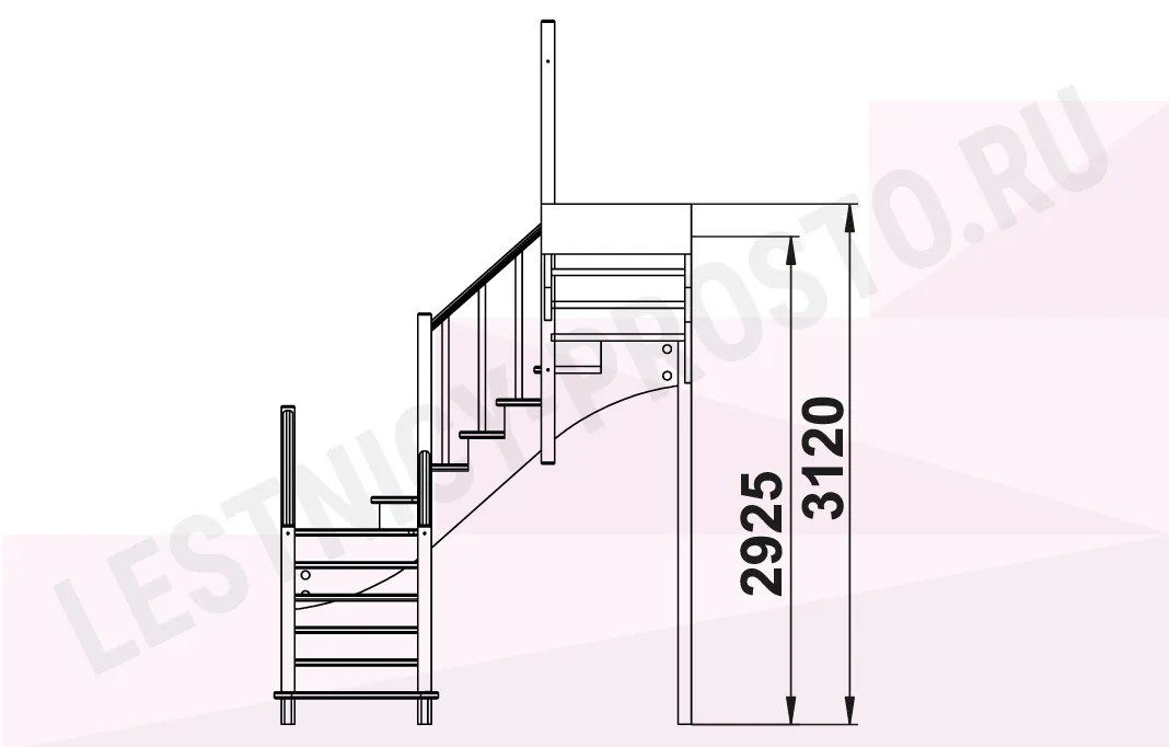 Ступени и поручень лестницы выполнены из дуба, остальные элементы из сосны. Возможно изготовление данной модели полностью из дуба.