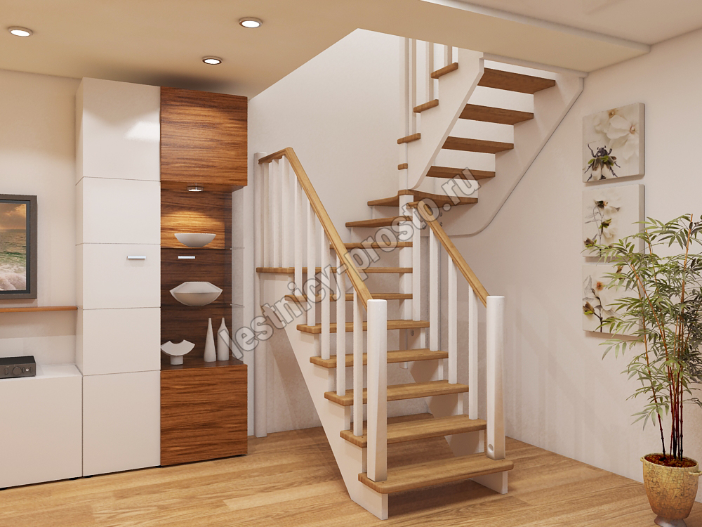 Ступени и поручень лестницы изготовлены из дуба, остальные элементы из сосны.