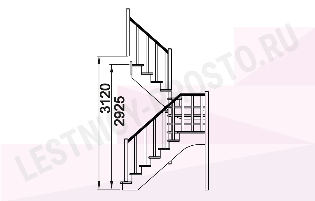 Ограждение у лестницы с обеих сторон (снизу до поворотной площадки)