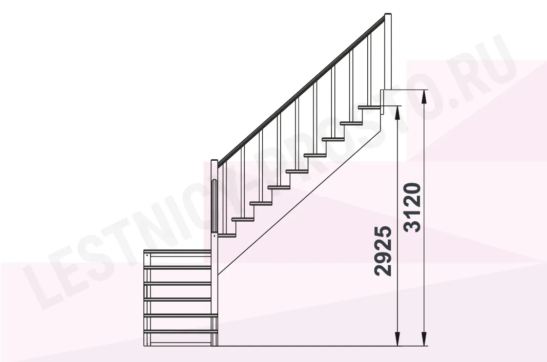 Базовый комплект включает в себя деревянные элементы лестницы и ограждения без какого-либо покрытия.