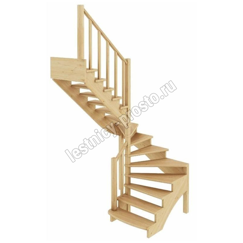 Базовый комплект включает в себя деревянные элементы лестницы и ограждения без какого-либо покрытия.