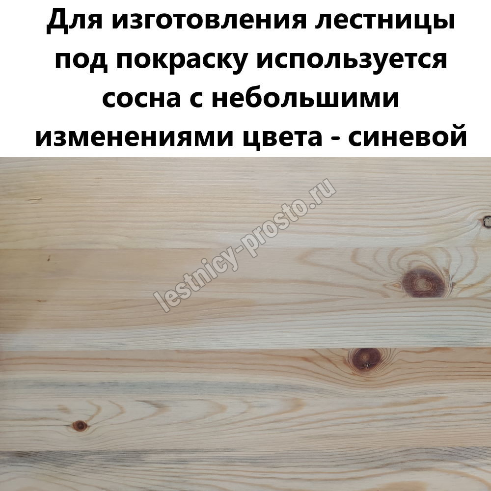 Обратите внимание! данная модель изготовлена из сосны эконом-класса, имеющей заметные синие/серые фрагменты, эта особенность не отражается на механических свойствах лестницы, но может оказаться видимой при покраске в светлые тона.