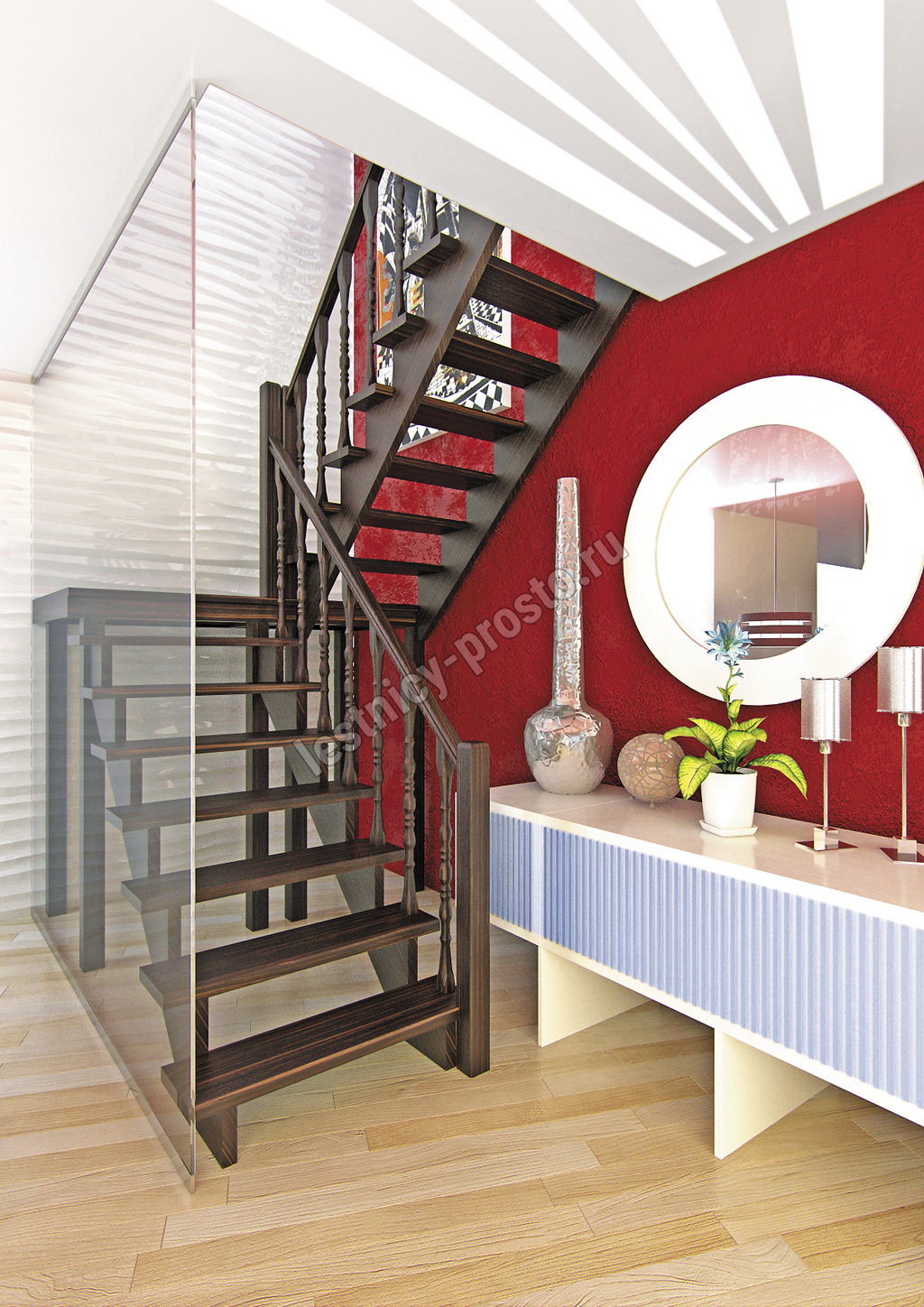Универсальная лестница, имеющая в основе своей конструкции наклонную опорную балку. Легко впишется в любой интерьер, даже на неровном полу. Место под площадкой можно закрыть и использовать для хранения различных предметов. Монтаж осуществляется силами двух человек на объекте по указаниям, приведенным в паспорте на лестницу.