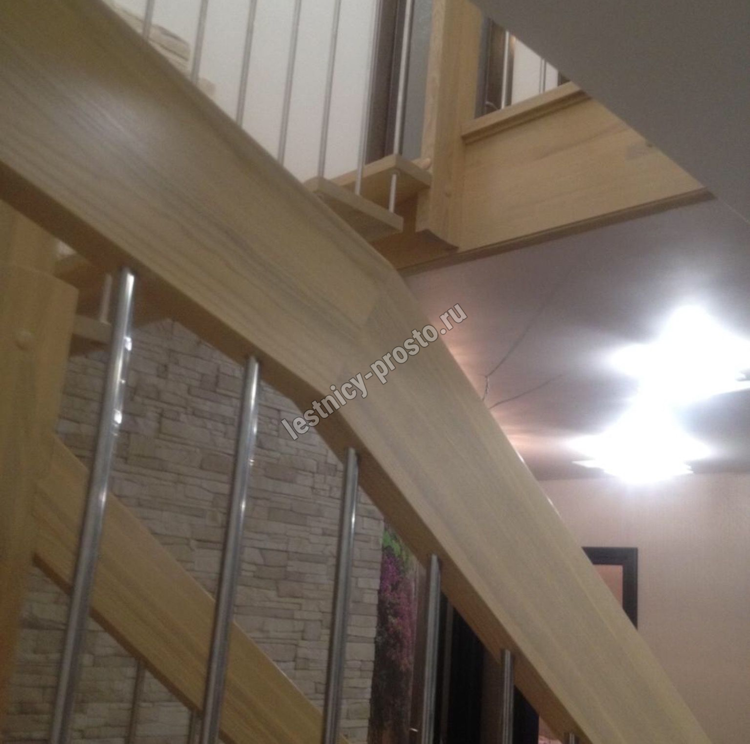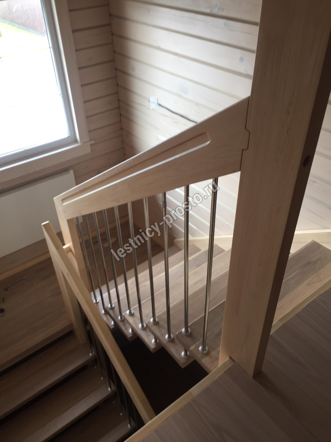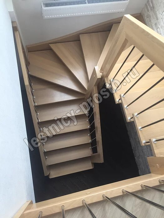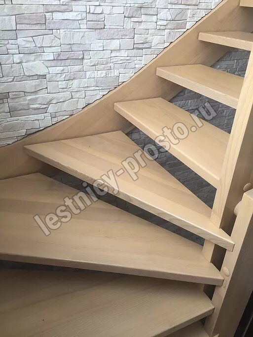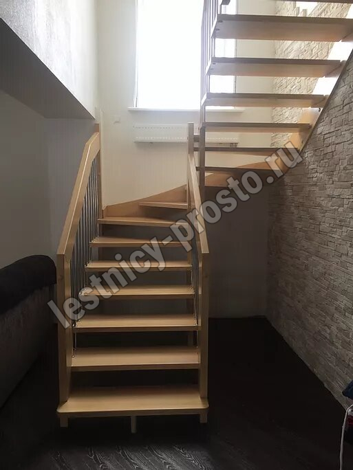 возможна комбинированная лестница: из сосны (ступени бук, ясень, дуб);