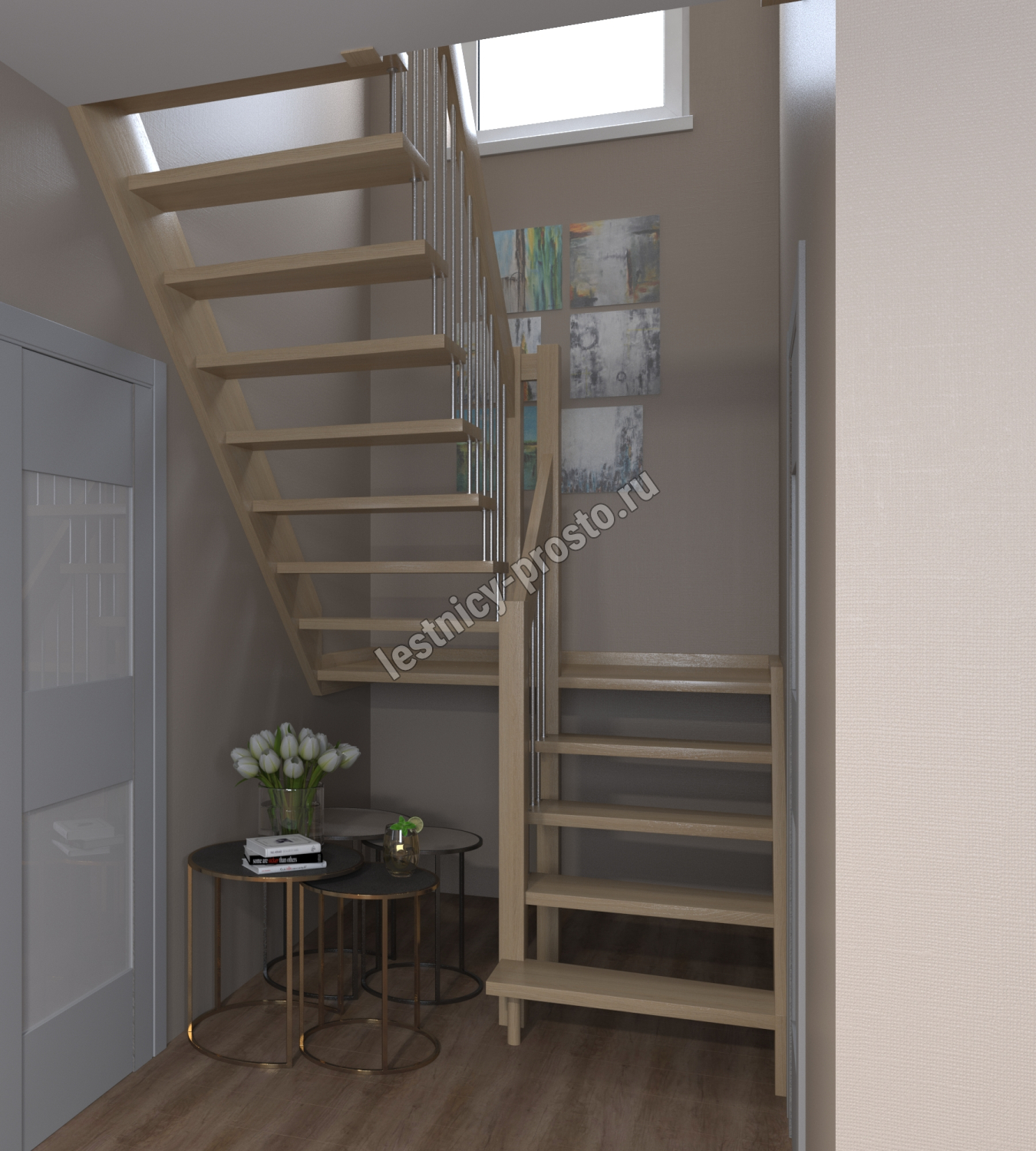 Лестница Prosto Console п-образная забежная, ясень h300 см
