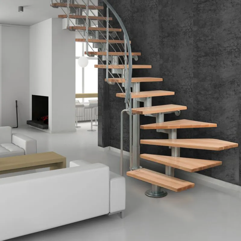Красивая комфортная лестница с уникальной модульной конструкцией, которая позволяет собрать большое число модификаций, подходящих под ваш проём и другие условия помещения. Возможные варианты сборки лестницы смотрите в блоке "чертежи и схемы". При монтаже модульной лестницы KOMPACT, вы можете варьировать высоту шага и проступь, получив точную необходимую высоту и габариты. Лестница KOMPACT возможна в двух вариантах: с шириной марша 740 мм и 890 мм. Ступени выполнены из массива бука и покрыты качественным износостойким лаком. Базовая комплектация позволяет получить лестницу под высоты этажа в диапазоне 2250 - 3030 мм, кроме того, установив дополнительный комплект увеличения высоты, можно поднять высоту лестницы до 3730 мм. Каркас и стойки ограждения выполнены из пластифицированного металла.