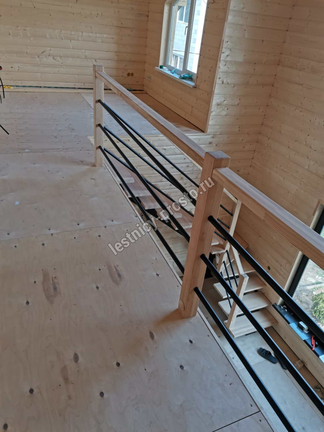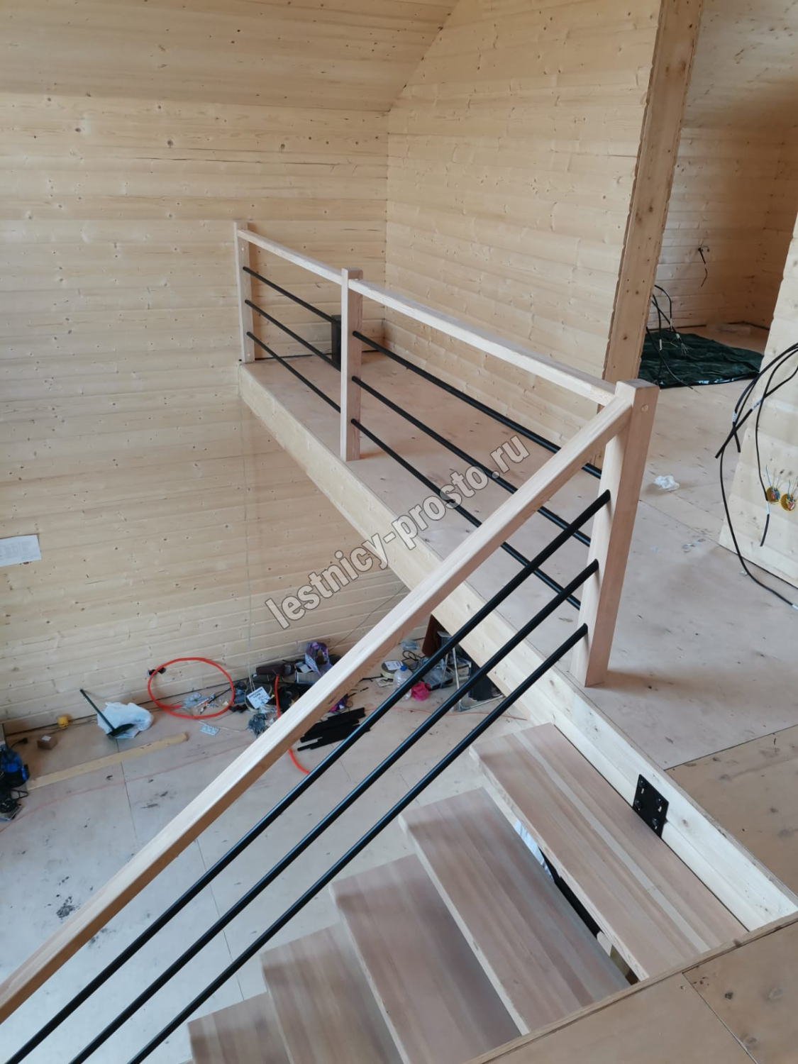 Лестница PROSTO MONO STEP TRINITY г-образная забежная, ступени лиственница с ограждением