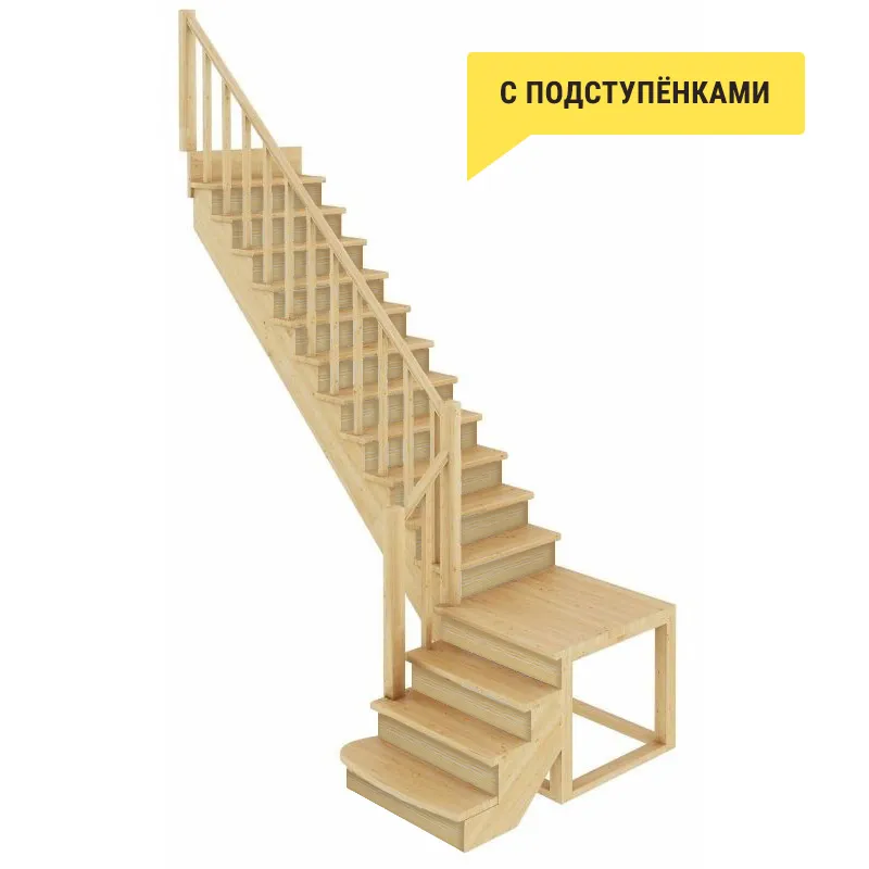 Поворот на 90° реализован посредством поворотных ступеней, высота поворота определяется параметрами вашего помещения и размерами проёма.