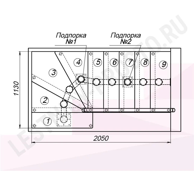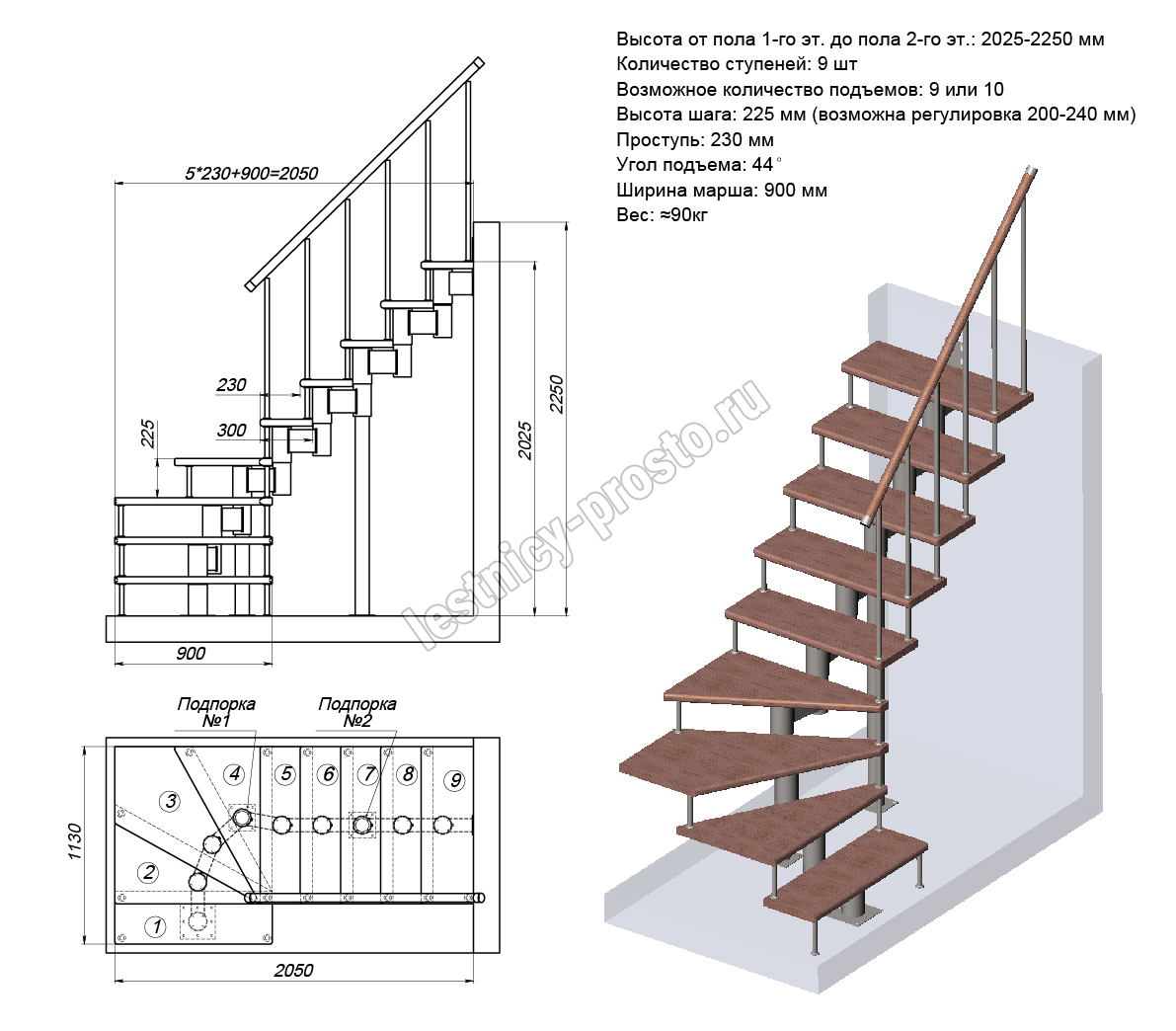 Высота лестницы 2025 - 2250 (9 ступеней) мм