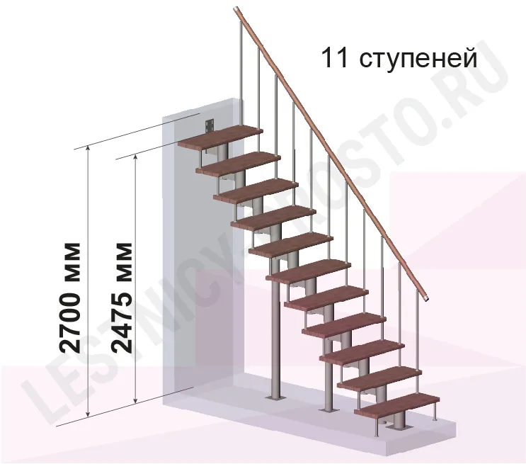 Модульная лестница PROSTO Module прямая/ h270 см