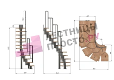 Лестница Prosto Urban Black гусиный шаг 600 мм, h216-312 см (12 ступеней), бук