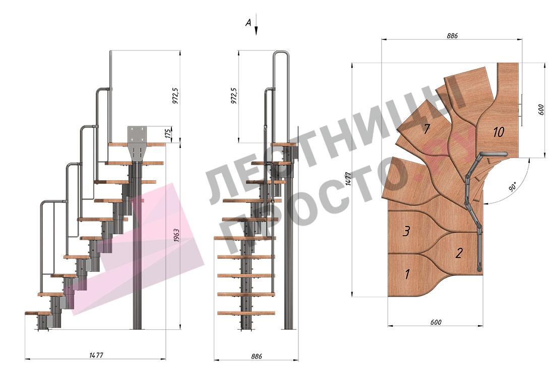 Лестница Prosto Urban Grey г-образная гусиный шаг 600 мм