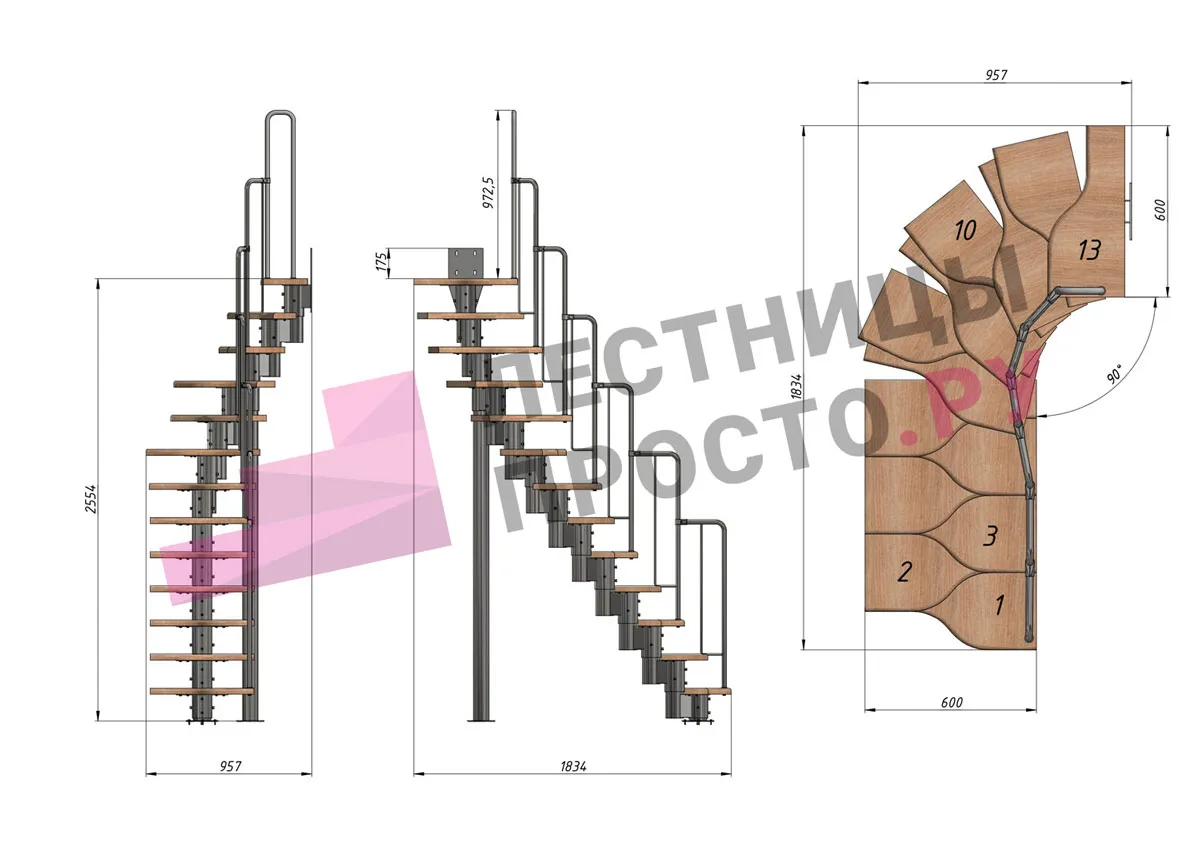 Лестница Prosto Urban White гусиный шаг 600 мм/ Ступени из берёзы мультиплекс