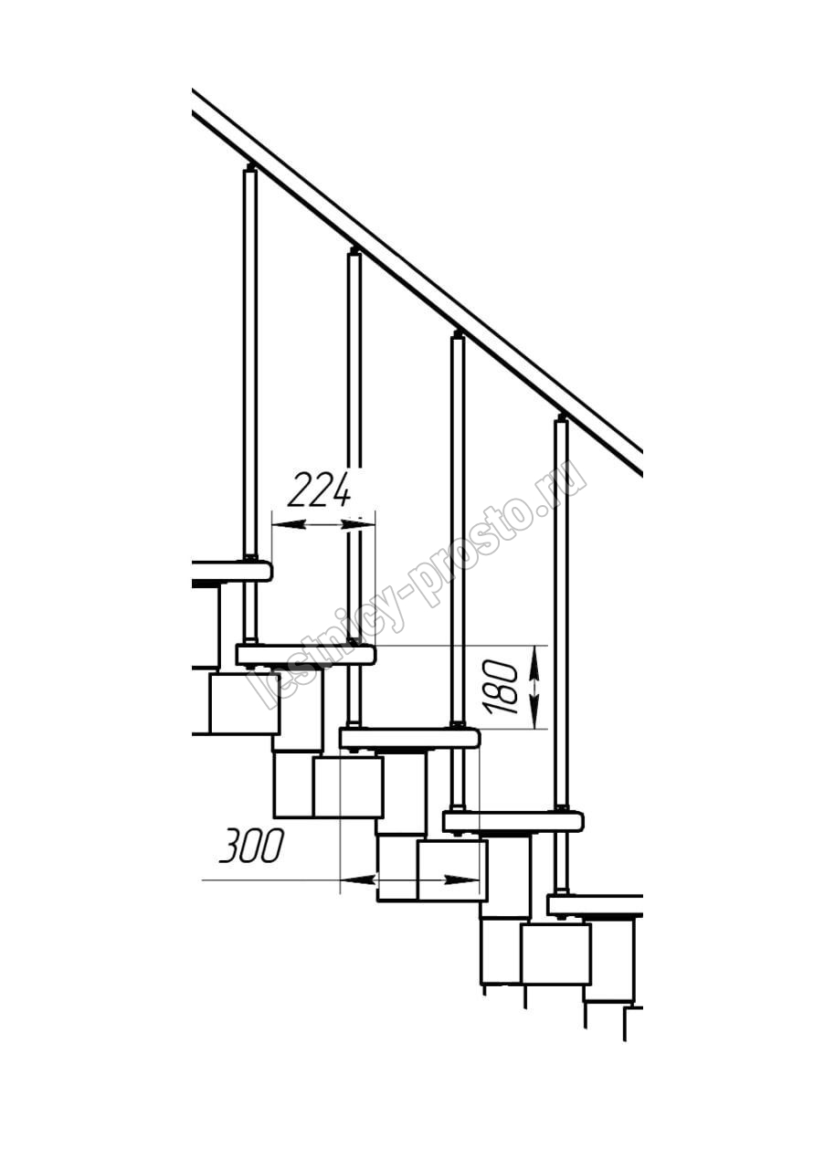 Модульная лестница Фаворит 180 2340-2470, Серый, Сосна, Крашеная, Без Ступений