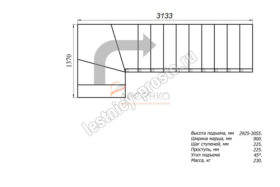 Модульная лестница Фаворит 225 2925-3055, Белый, Сосна, Крашеная, Без Ступений