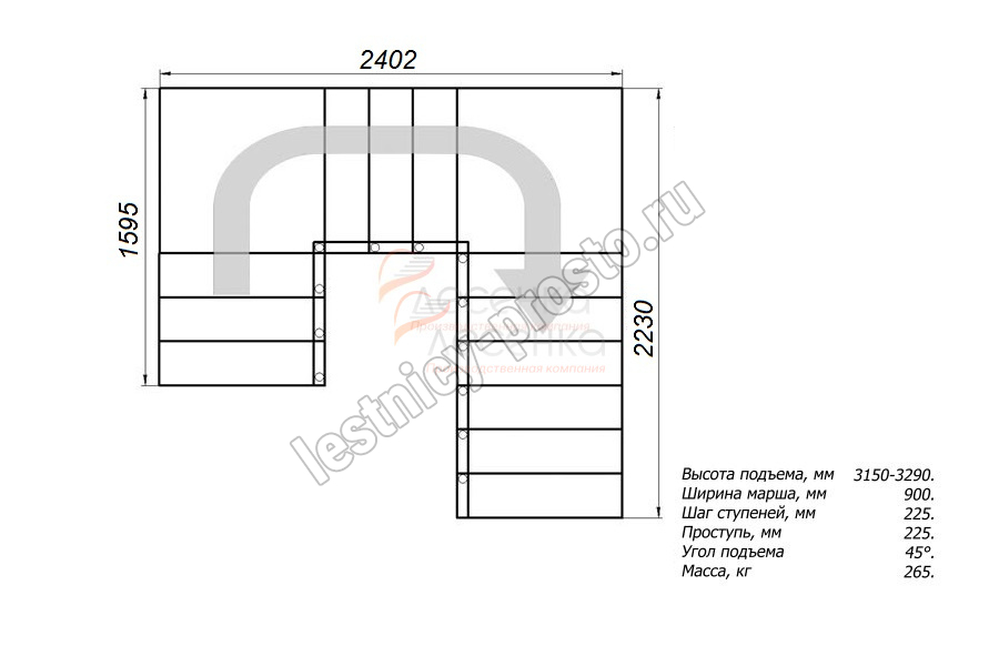 Модульная лестница Комфорт 225 3150-3290, Серый, Бук, Крашеная