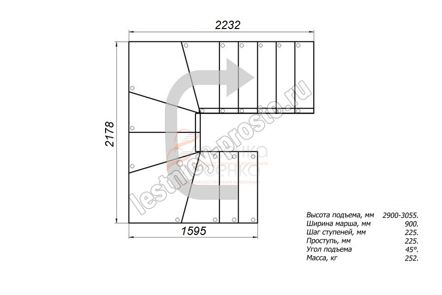 Модульная лестница Спринт 225 2925-3055, Серый, Бук, Крашеная