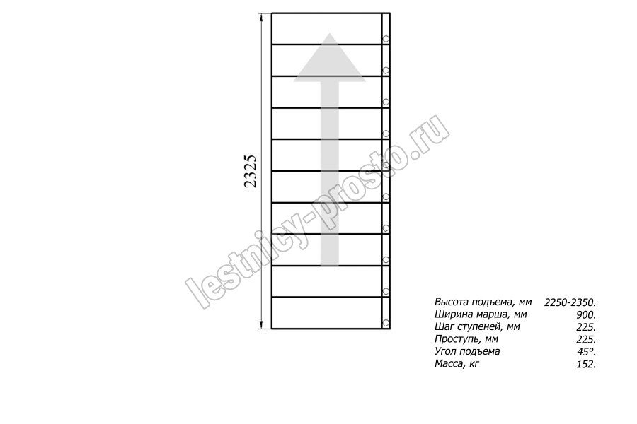 Модульная лестница Стандарт 2250-2350, Белый, Лиственница, Нержавеющая сталь