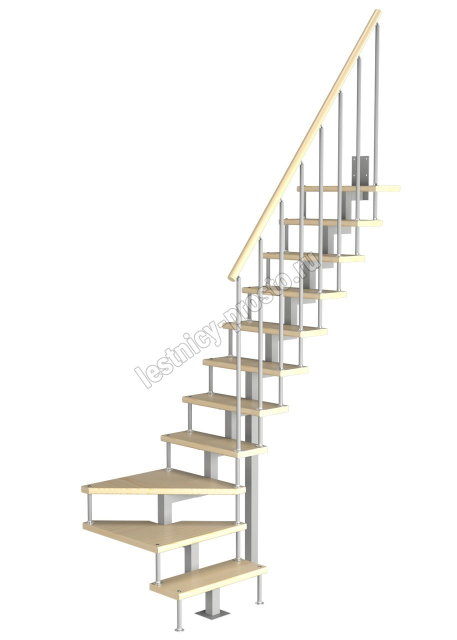Модульная малогабаритная лестница Компакт 2475-2700, Белый, Сосна, Нержавеющая сталь