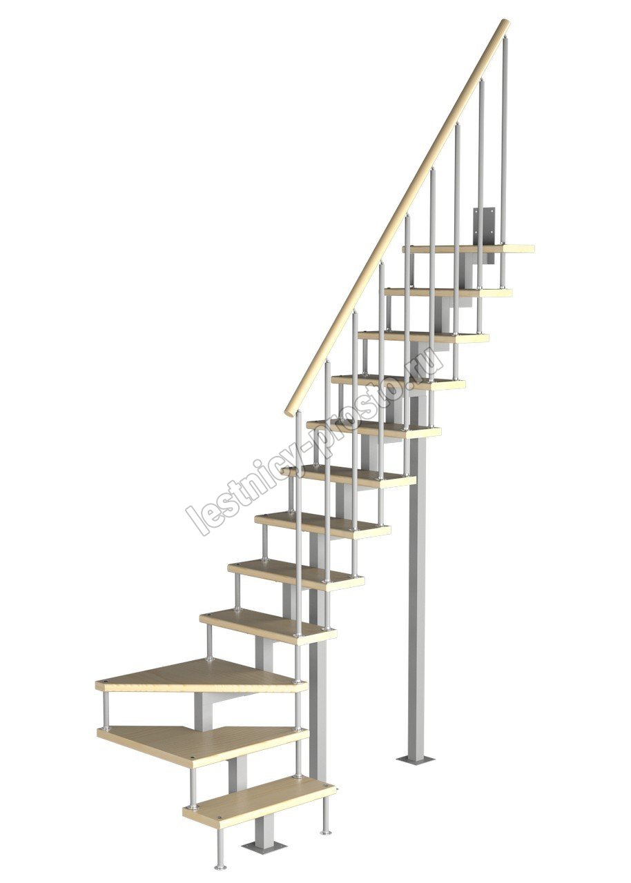 Модульная малогабаритная лестница Компакт 2700-2925, Белый, Сосна, Нержавеющая сталь