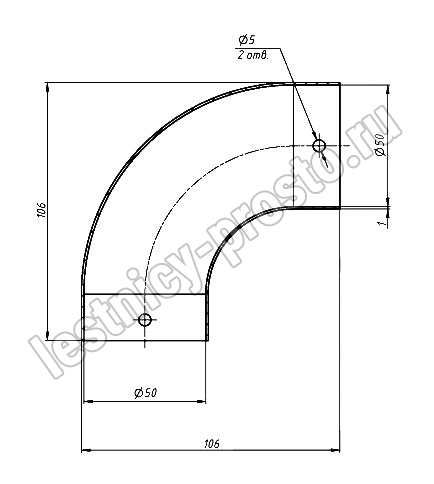 Отвод для поручня ПВХ ∅50 мм, уличное использование