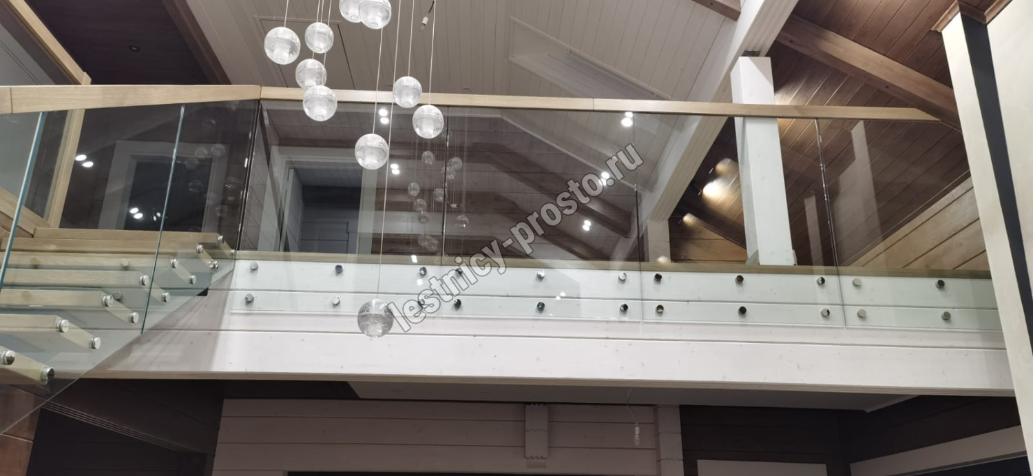 Ограждение из ударопрочного стекла и ясеня.