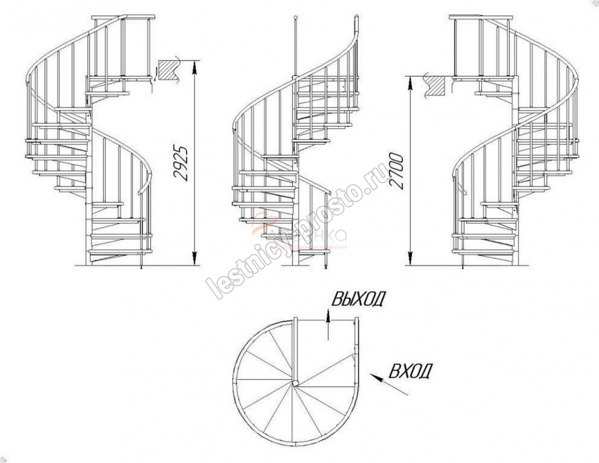 Винтовая лестница ЛЕС-1,8 высота 2700-2925, Серый, Сосна