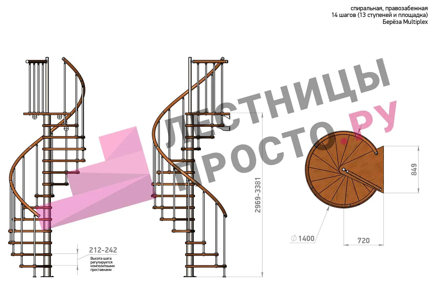 Винтовая лестница Prosto Spiral Black D140см, h318.2-362.3 см