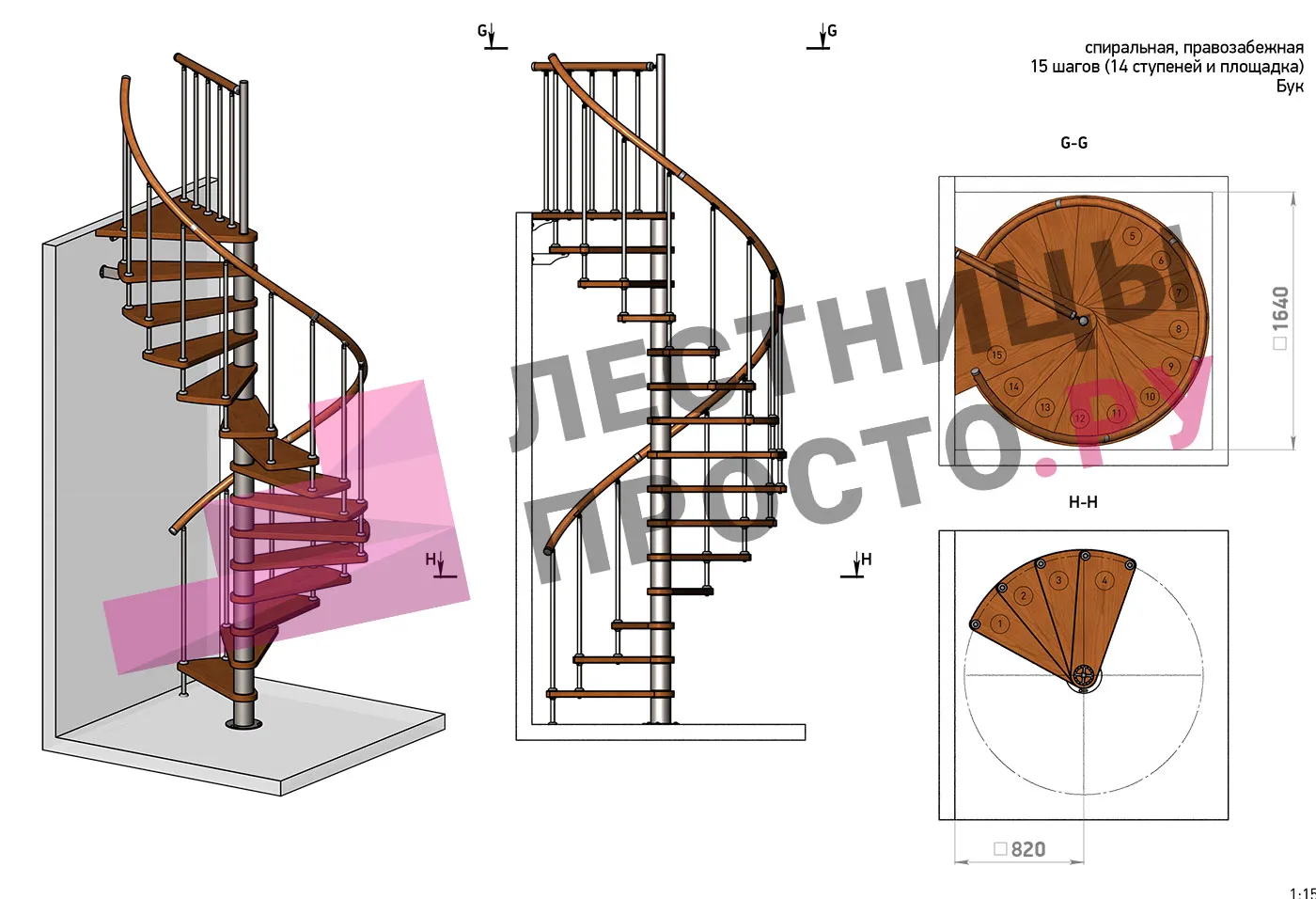 Ширина ступени между центральной колонной и поручнем ≈ 680 мм