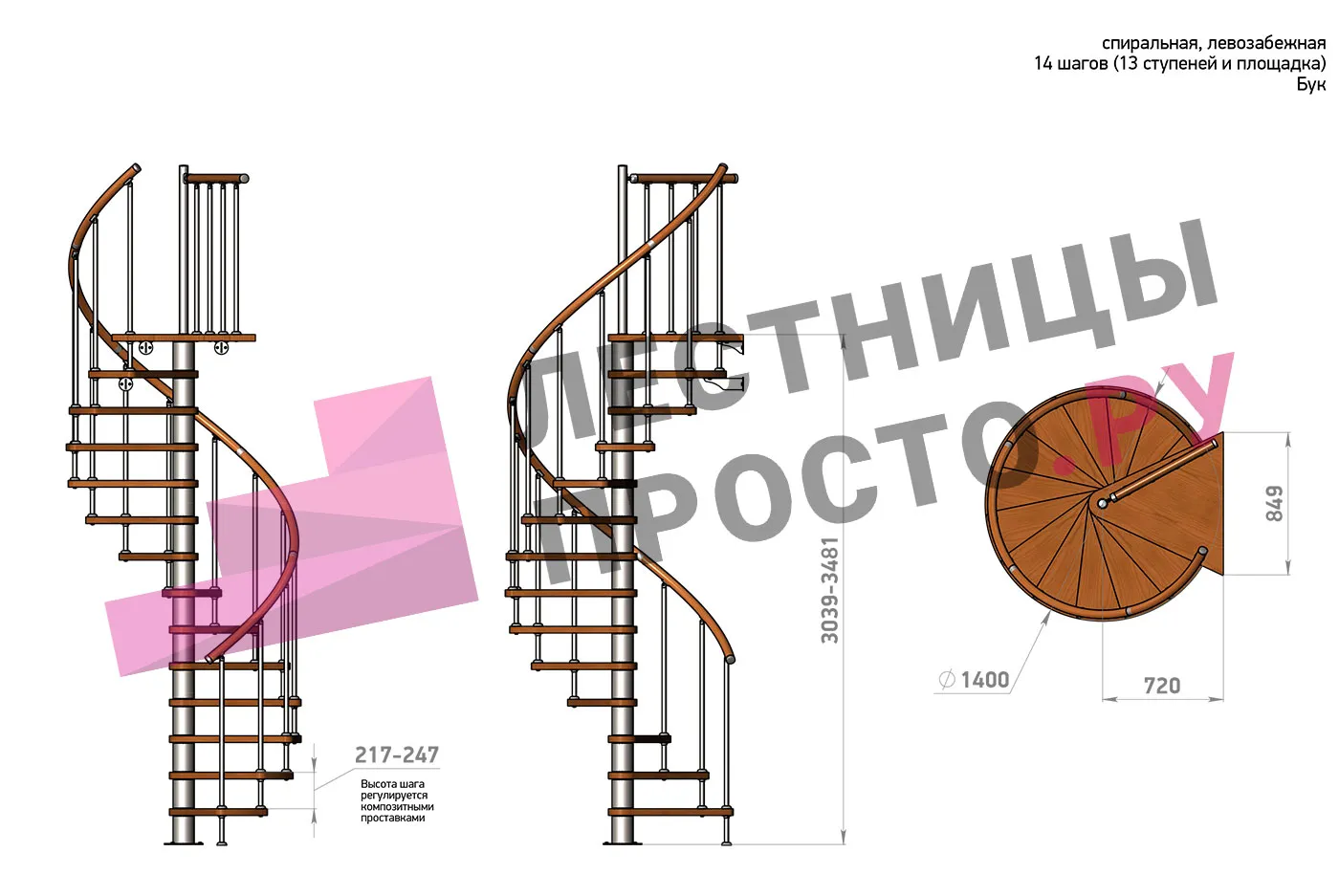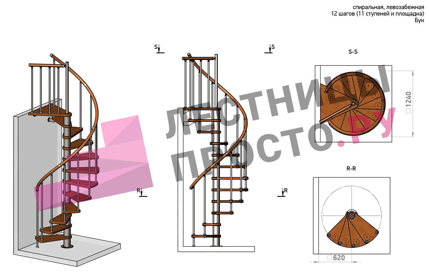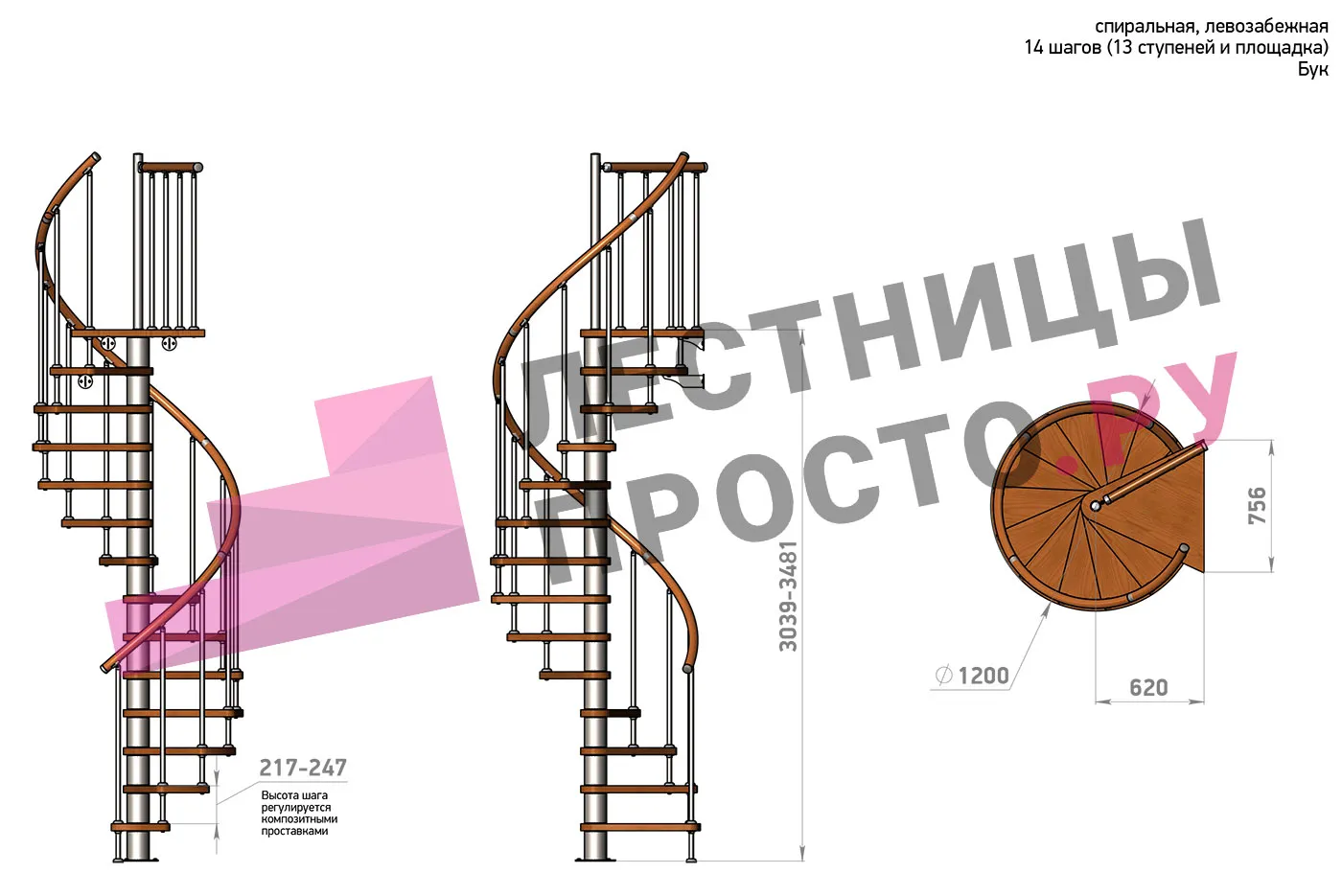 | Винтовая лестница Prosto Spiral Black D140см, h282.2-326,3 см, бук |
