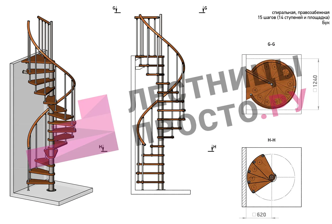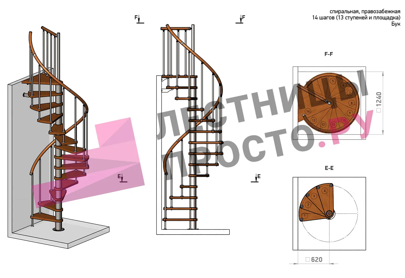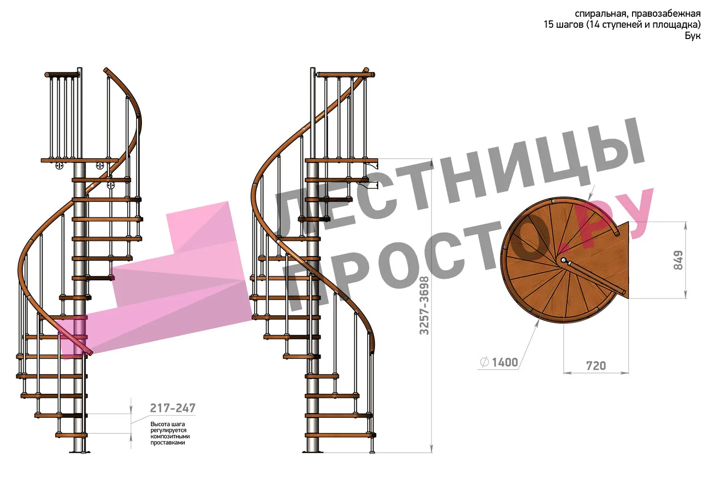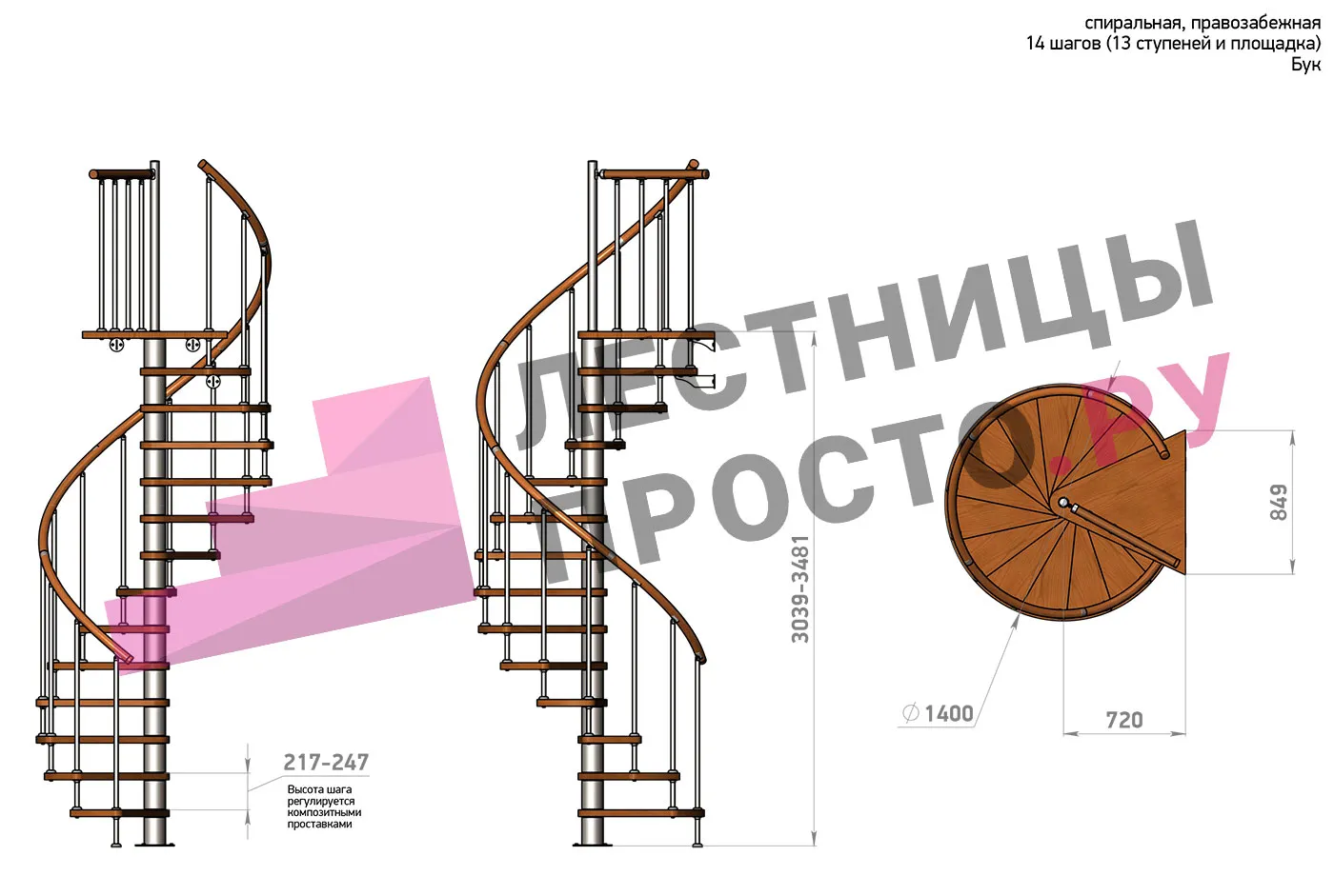 | Винтовая лестница Prosto Spiral Black D140см, h282.2-326,3 см, бук |
