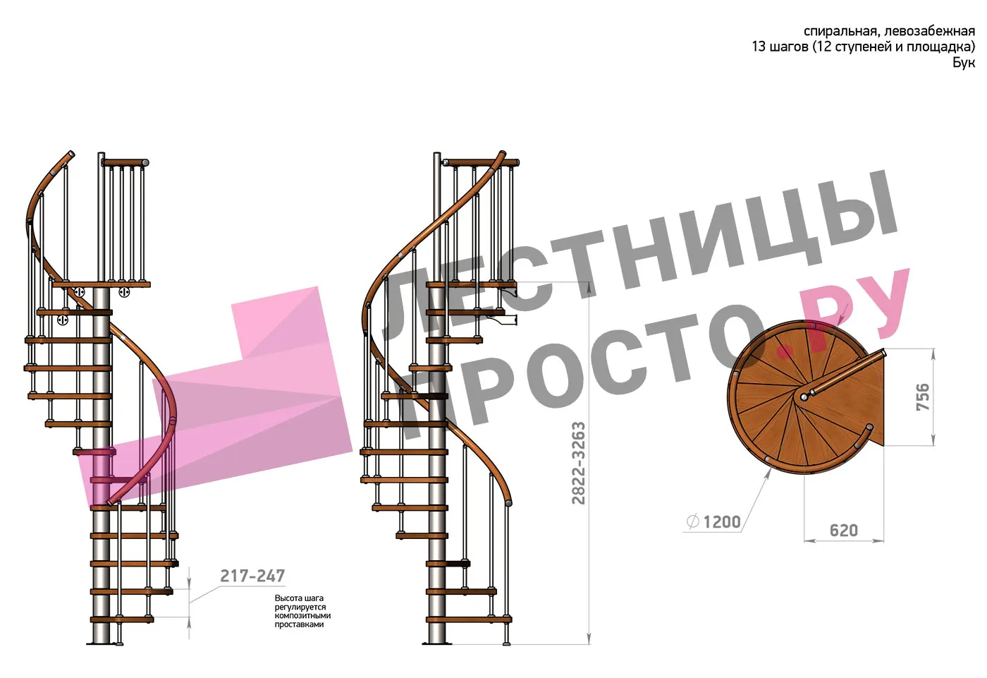 | Винтовая лестница Prosto Spiral Black D120см, h282.2-326,3 см, бук |