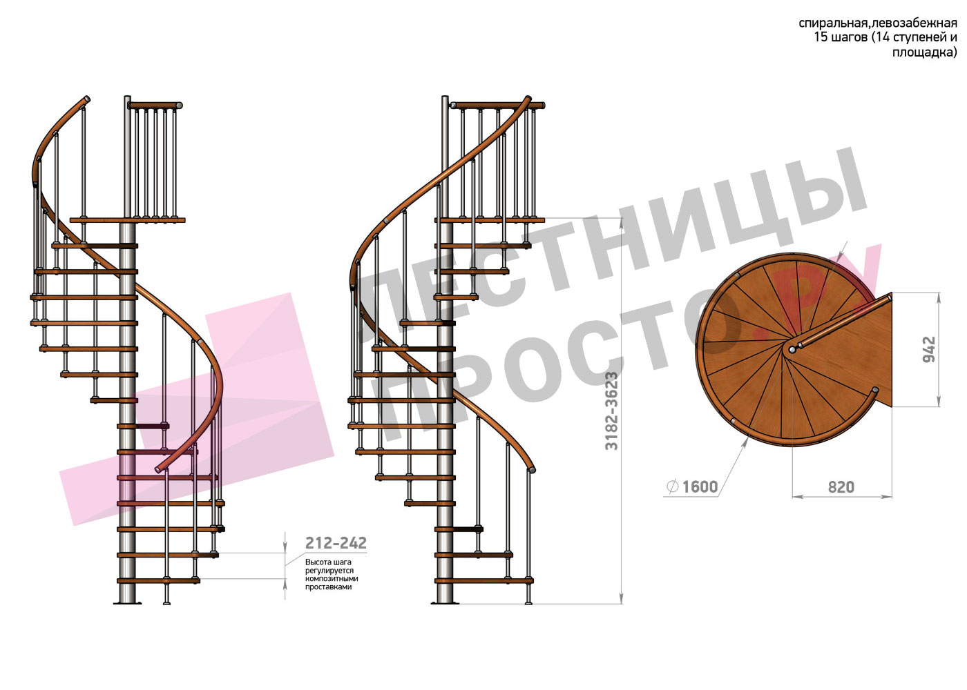 | Винтовая лестница Prosto Spiral Black D160см, h275.7-313.9 см |