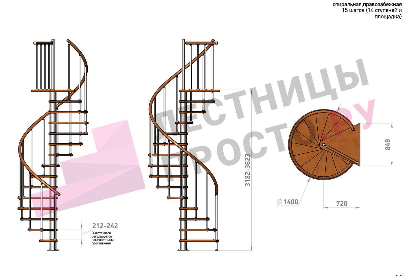 | Винтовая лестница Prosto Spiral Black D140см, h275.7-313.9 см |