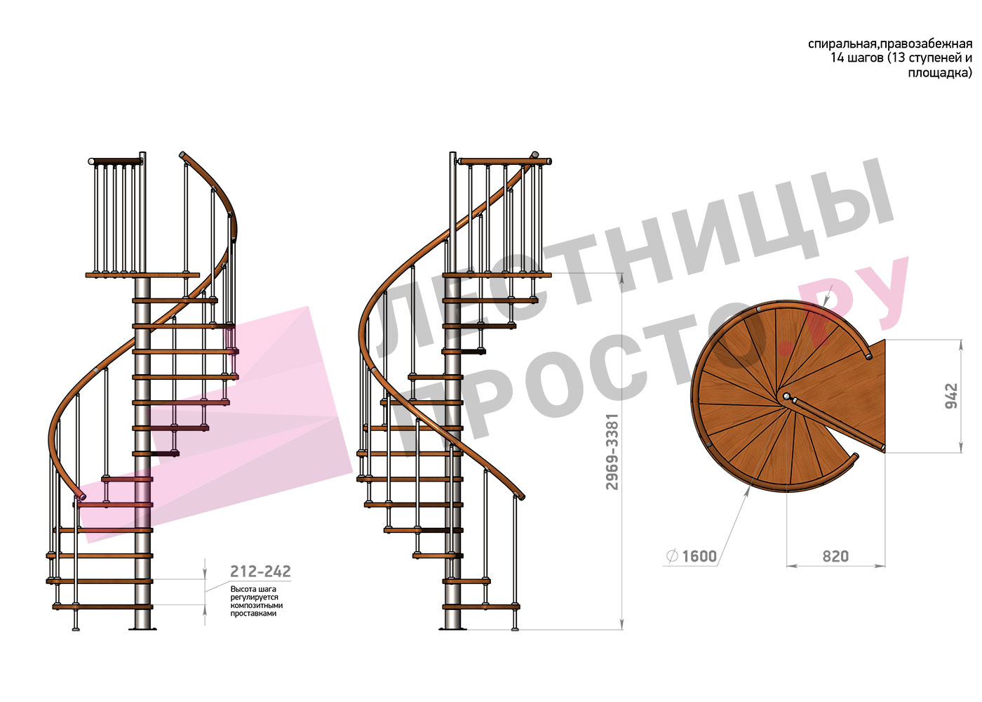 | Винтовая лестница Prosto Spiral Black D160см, h296.9-338.1 см |