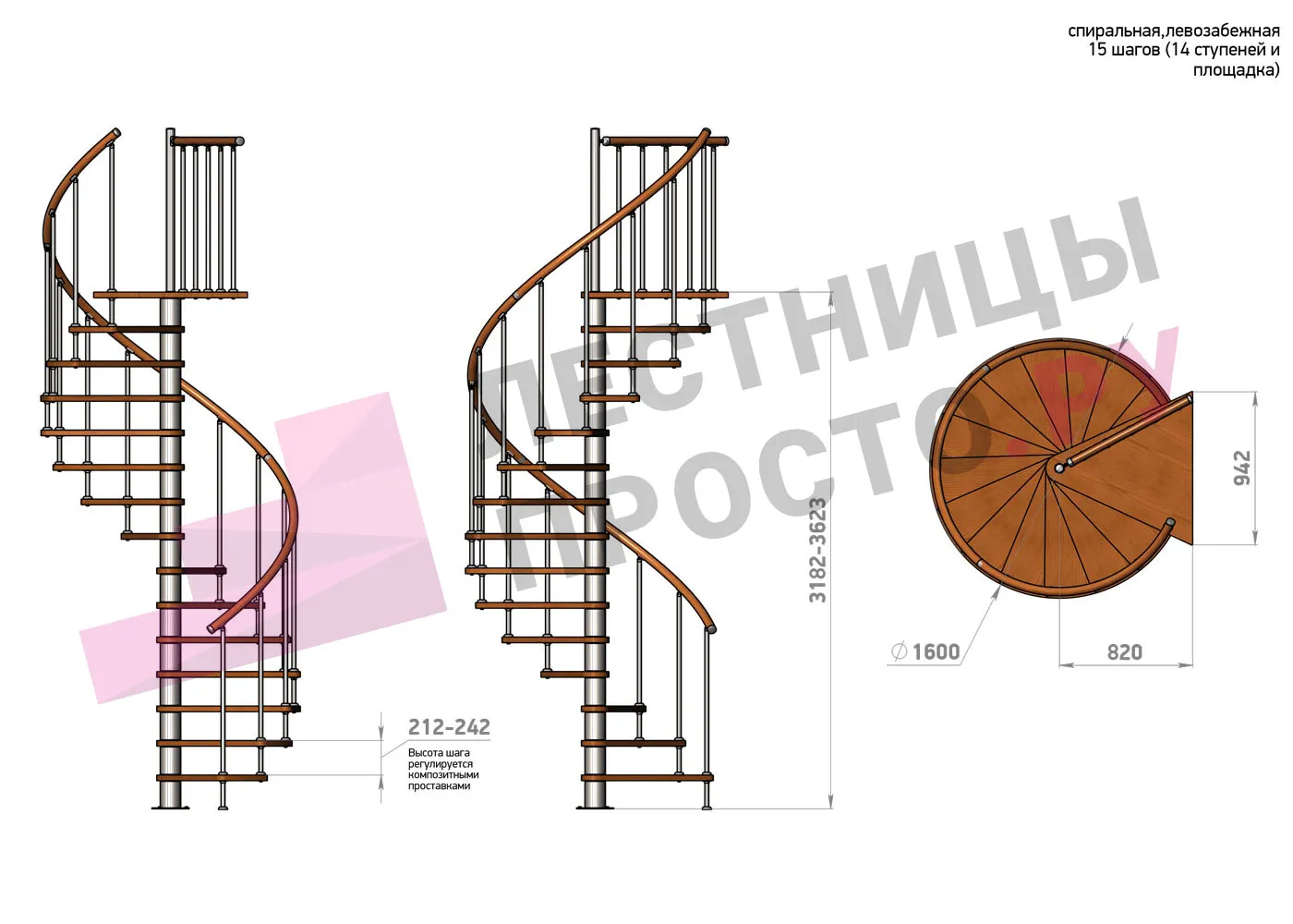 Винтовая лестница Prosto Spiral White/Высота 3182 - 3623 мм