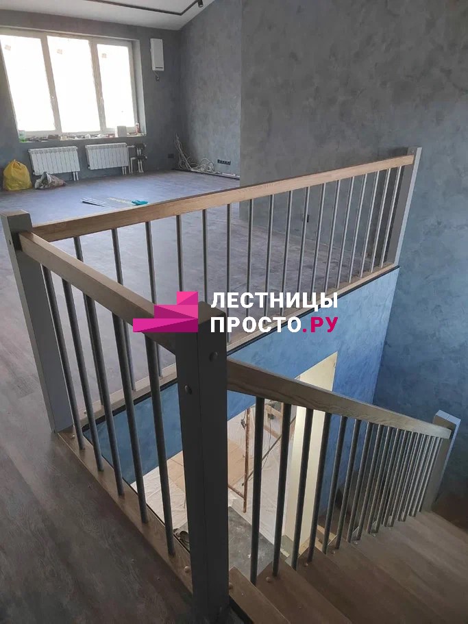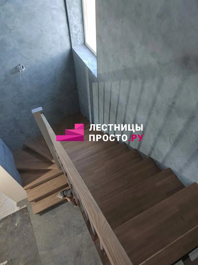 П-образная лестница из березы и ясеня по индивидуальному проекту