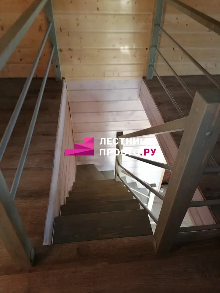 Лестница на центральном каркасе г-обр. металлик, ступени лиственница, LP-151021