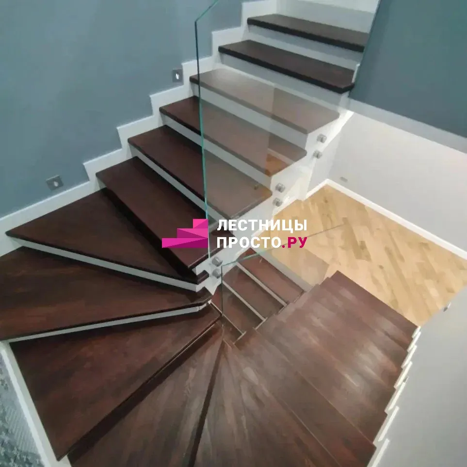 Ступени и поручень выполнены из срощенной лиственницы категории АВ.